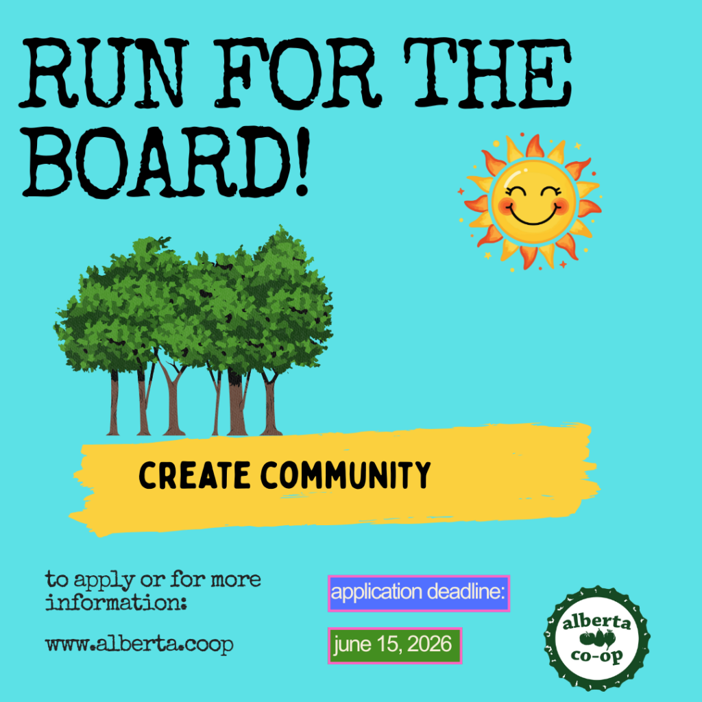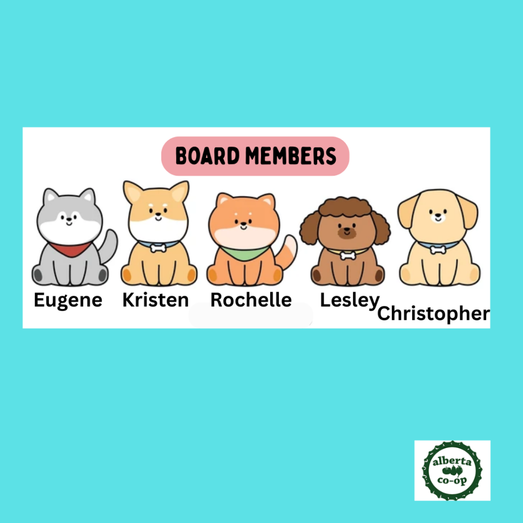 You can contact the Board of Directors with any questions or concerns at board@alberta.coop
